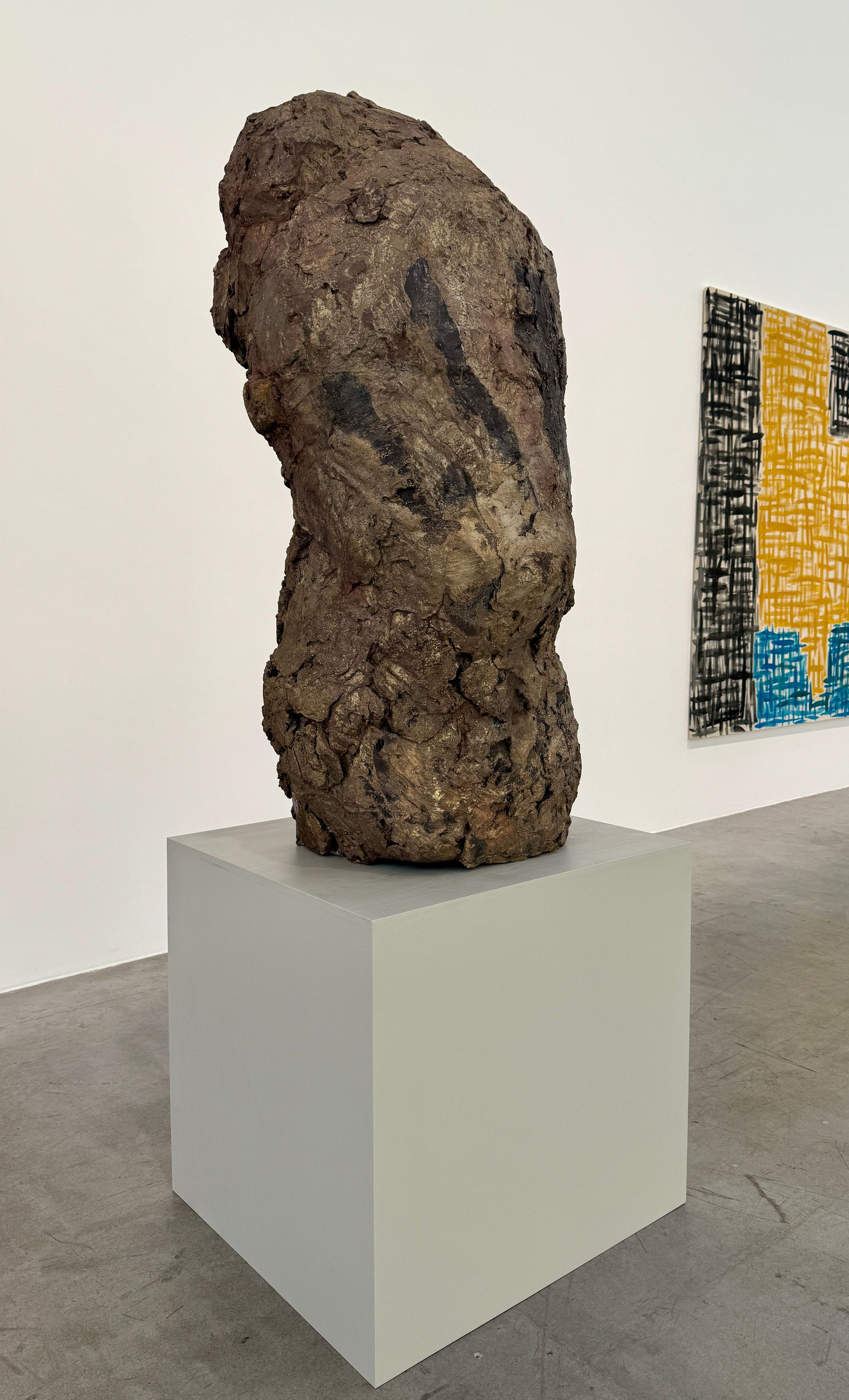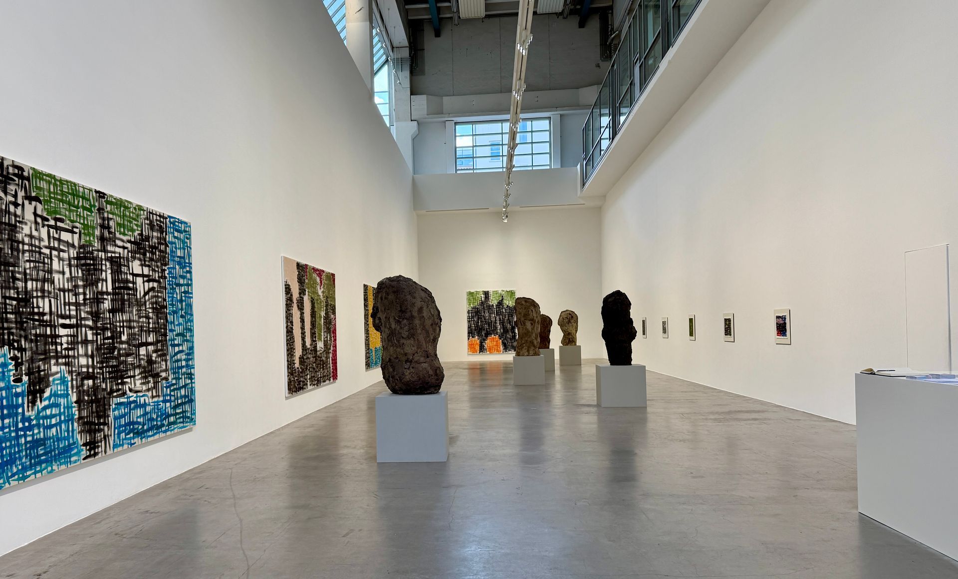 Large paintings by Förg and imposing sculptures by Josephsohn fill the main hall of the gallery, which is almost the size of an airplane hangar.