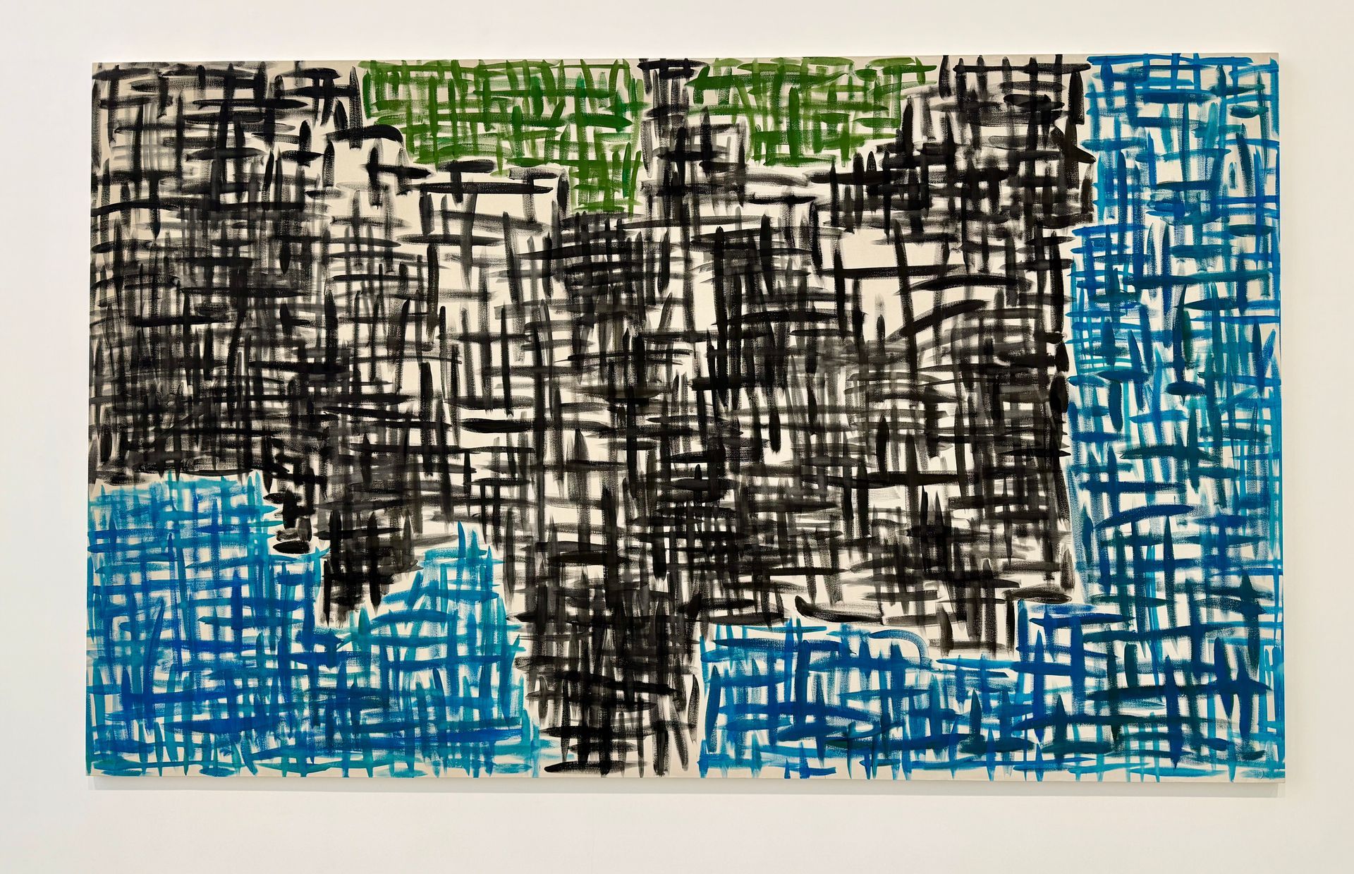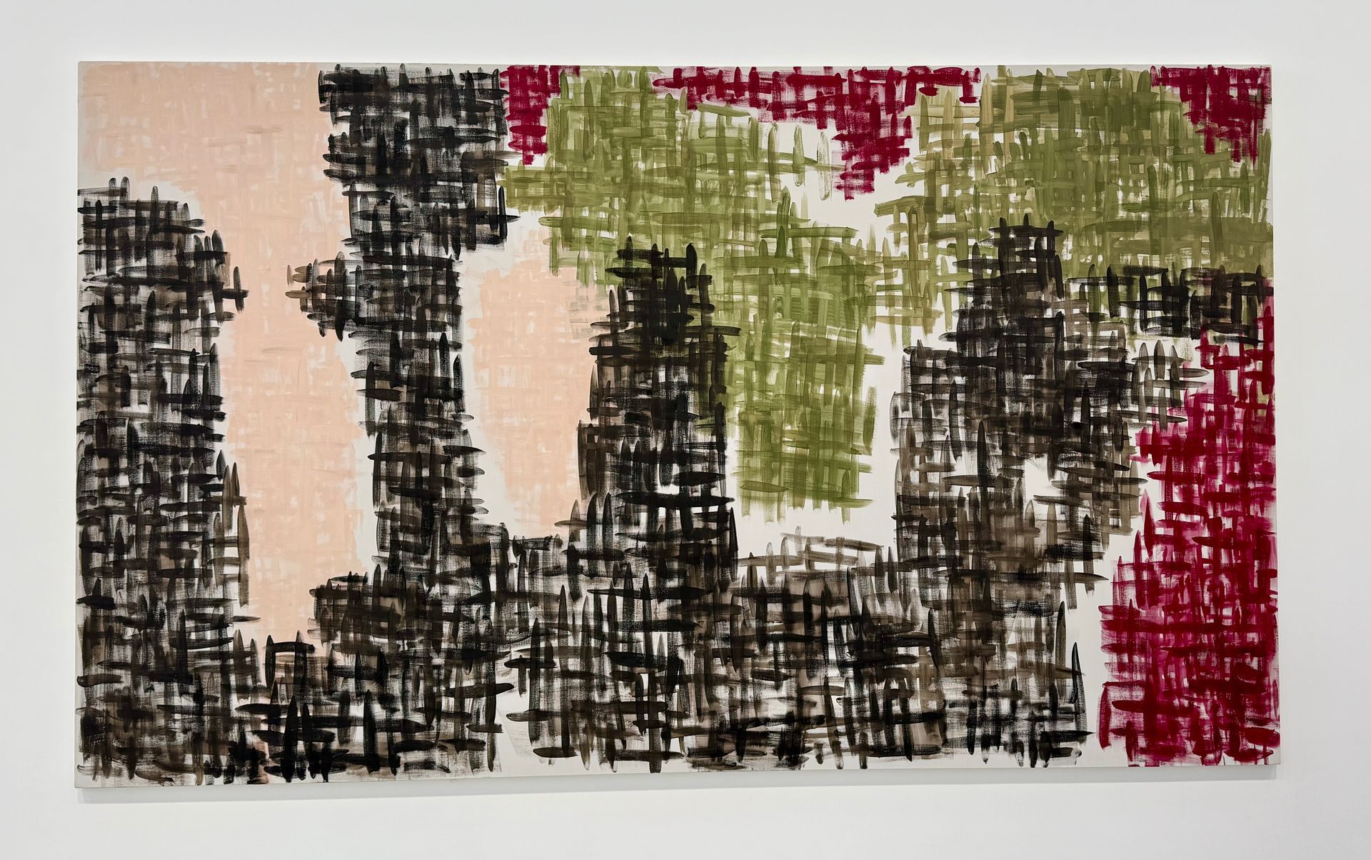The Günther Förg paintings are like sophisticated crazy quilts - patchwork shapes, puzzle-pieced together. The brush marks amount to rhythmic stabs, alluding to the warp and weft of textiles (but not cashmere - more of a scratchy Pendleton wool). The washed out color palette consists of mostly mineral tones. In spite of the constrained brush movements and reticent color, the paintings keep your attention - partly due to the large scale. The interlinking block shapes are intriguing. Although I approached these paintings as abstract pieces, there was one where I couldn’t “unsee” the map of U.S. Not sure if that was the artist’s intent or just a coincidence.