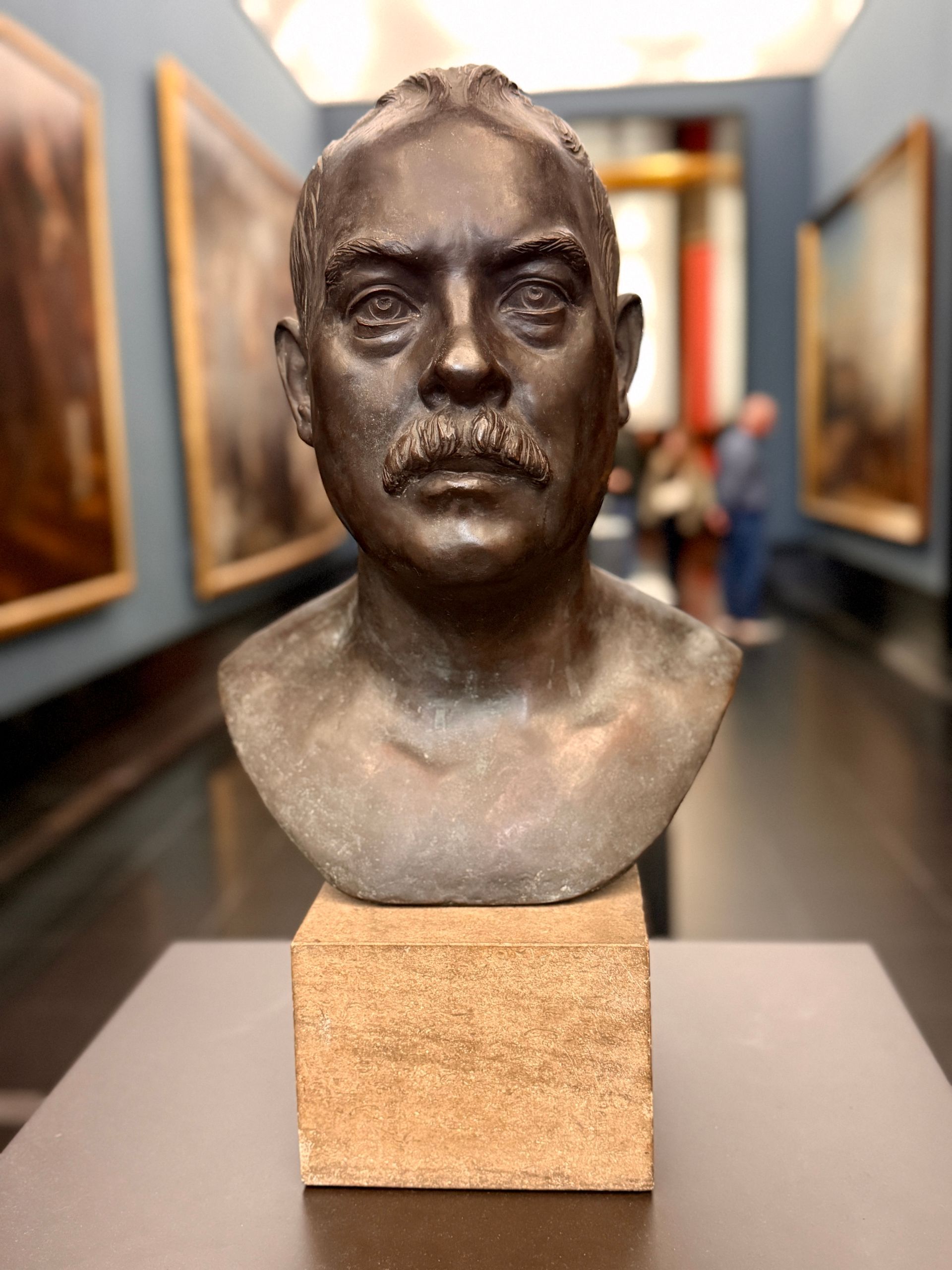 Included in the exhibit is this large portrait of Joseph Beuys by Andy Warhol , and may represent how Andy viewed Beuys - as more of an “art star,” than the artist-economist-social architect that Beuys is remembered as. This silkscreen painting has a frosting of glass dust, giving the piece some bling. The rough-hewn basalt pillars on the floor are similar to the ones used in Beuys’ 7,000 oaks project where 7,000 oak trees were planted as a part of the 1982 documenta 7 international art event. Each tree planted was accompanied by one of the stones.